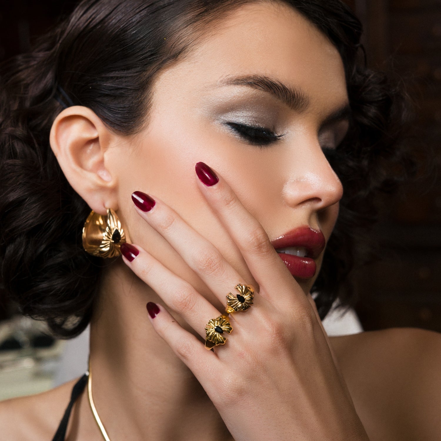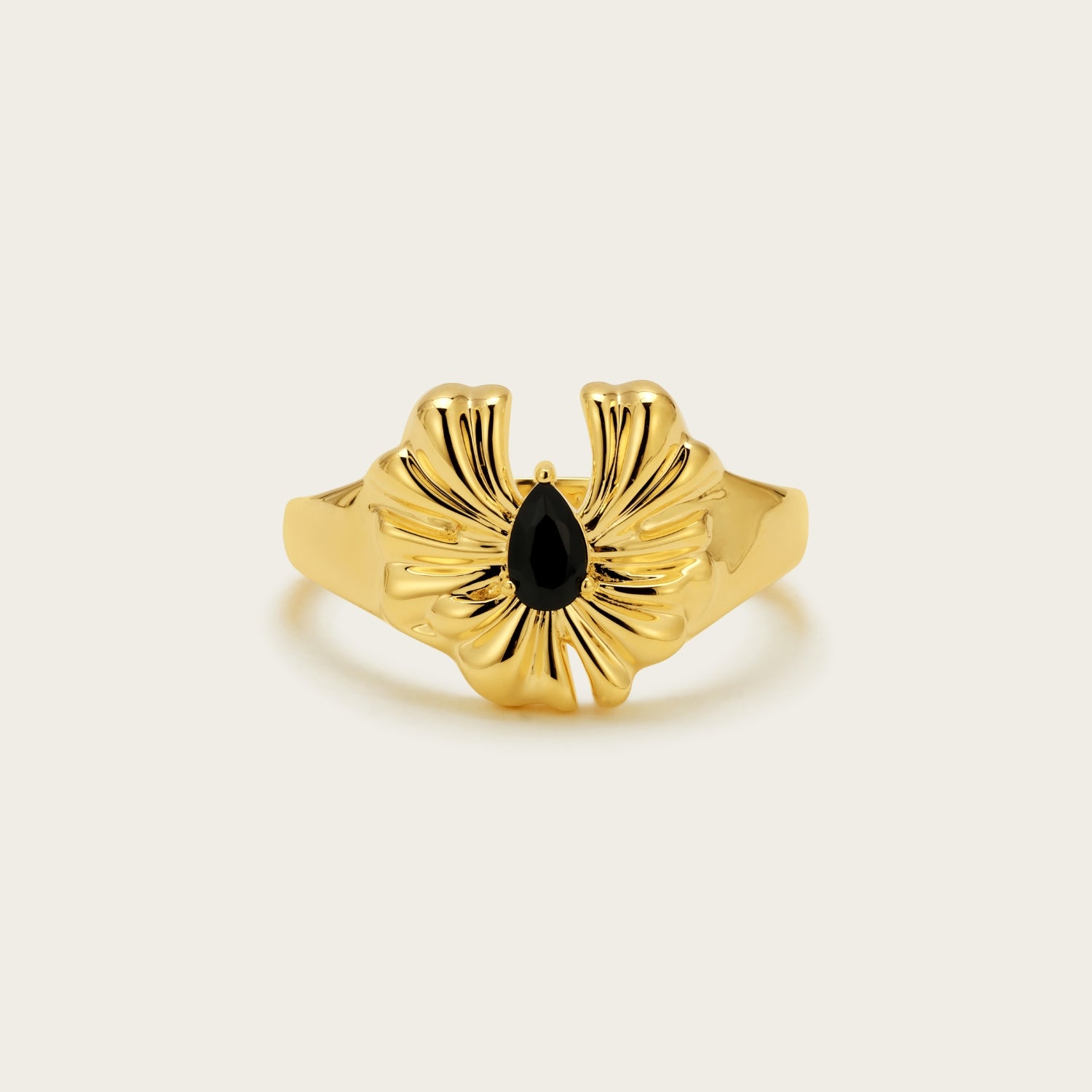 A striking signet ring featuring Sereia’s signature flower design, inlaid with a pear-shaped natural black agate stone. With its bold yet elegant presence, this ring blends modern artistry with lasting sophistication