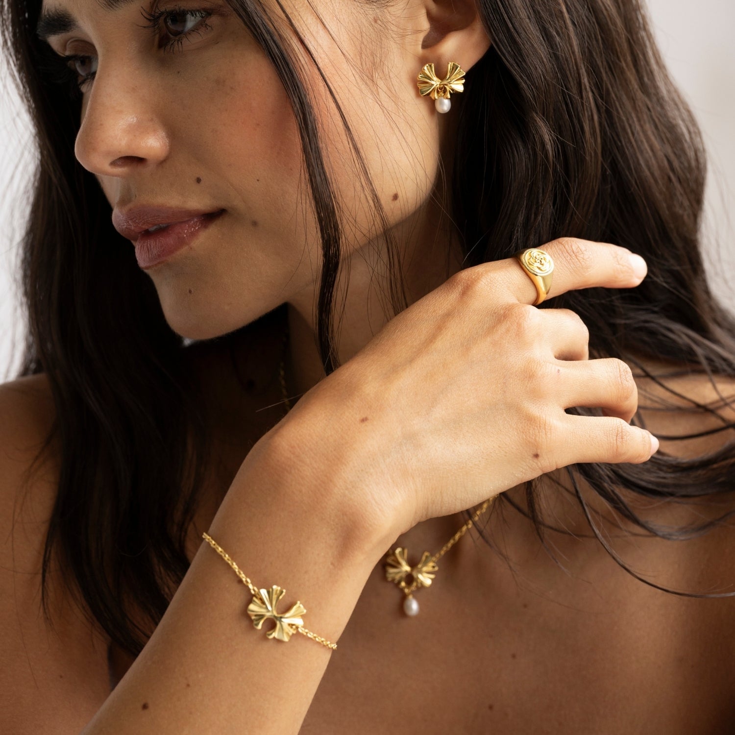A delicate bracelet featuring Sereia’s signature flower design, elegantly crafted and attached to a fine Anker chain. With its clean lines and graceful character, this bracelet offers a subtle yet striking accent to any style